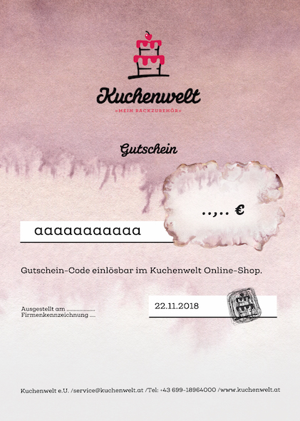 Verschenke süße Freude mit dem Kuchenwelt Geschenkgutschein! (Versand per E-Mail während der Bürozeiten)