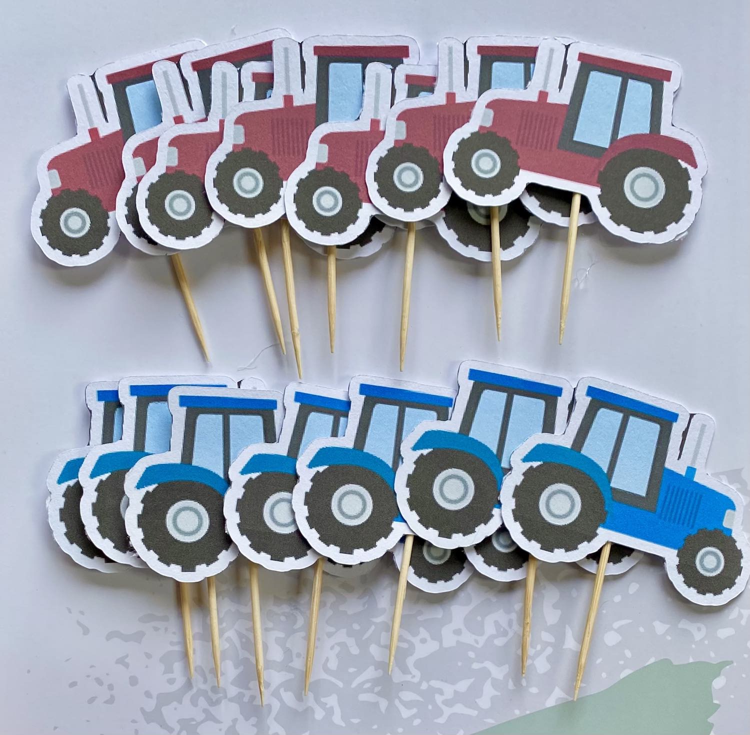 Verziere deine Cupcakes und Torten mit diesem schönen Papier Topper Set! Die Topper sind ideal zum Feiern von Geburtstagen! Inhalt: 12 Topper Traktoren Es wird empfohlen, die Sticks vor dem Verzehr zu entfernen.