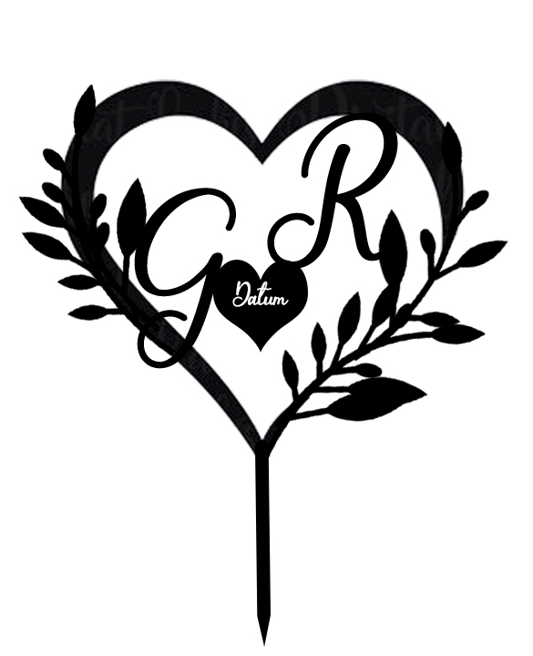 Wir machen dir deinen persönlichen Kuchen Topper. Der Topper zeigt die gewünschten Anfangsbuchstaben und ein Datum. Ideal für Hochzeitstorten oder für Jubiläen.
