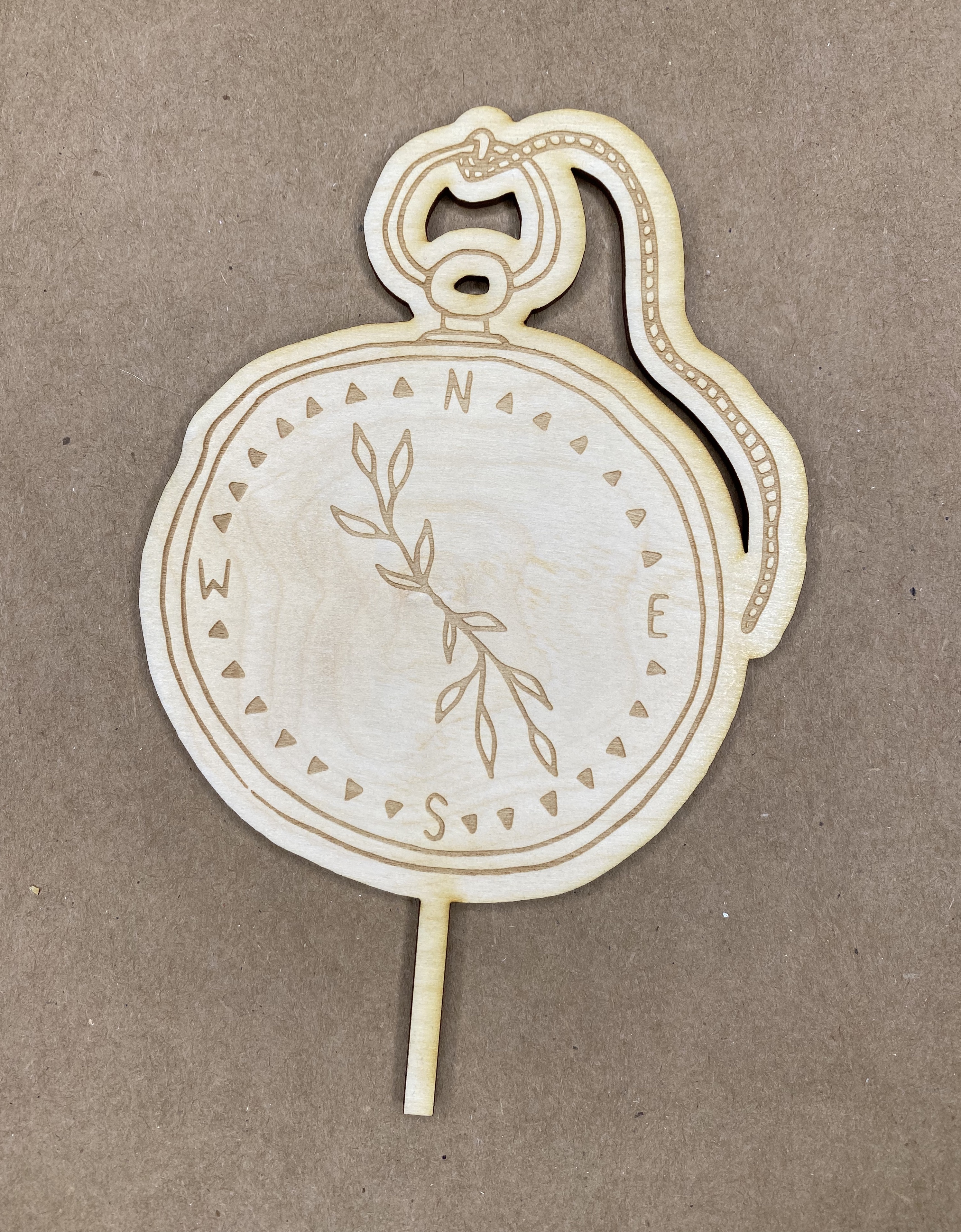 - Holzpappe 2mm stark. Sieht wie ein Laubsägeholz aus, ist aber ein Karton. Dünner Holzspieß wird hinten angeklebt.