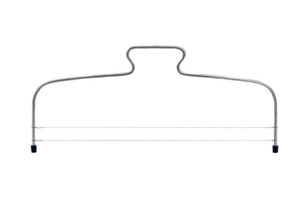 Torten und Kuchen in gleichmäßige Lagen jeder gewünschten Stärke schneiden? Kein Problem mit dem Tortenschneider! Dafür stellst du zunächst die rostfreien Sägedrähte an beiden Enden auf die gewünschte Höhe. Fasse das Gerät mit einer Hand und zieh den Tortenschneider mit leichter Sägebewegung durch den Tortenboden. Fertig!